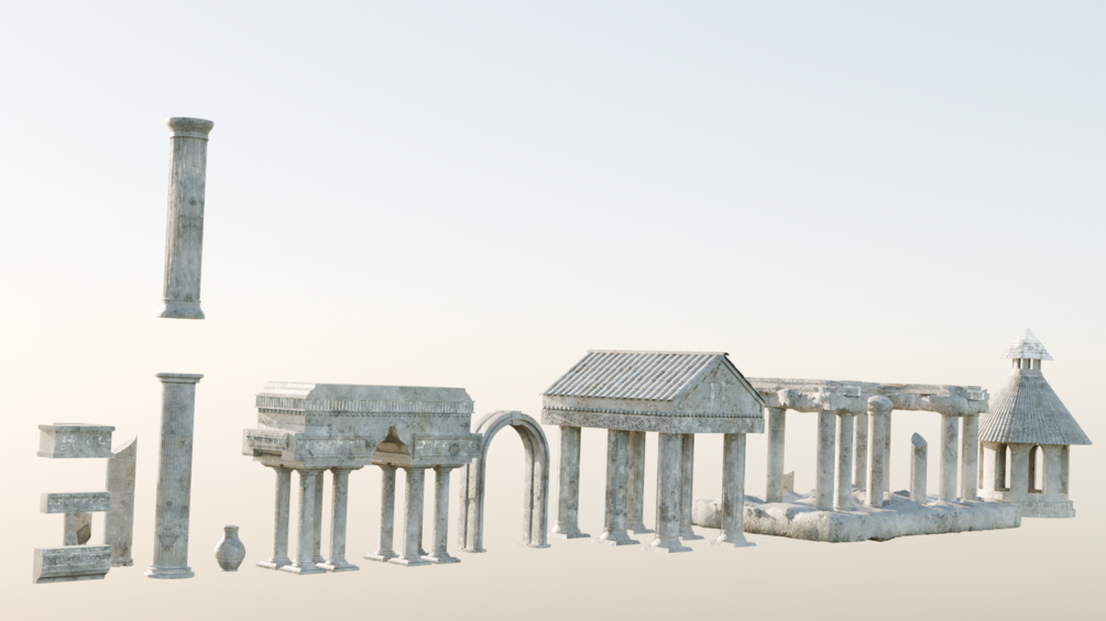 You'll receive a various amount of assets to use in your own 3D renders and artworks.